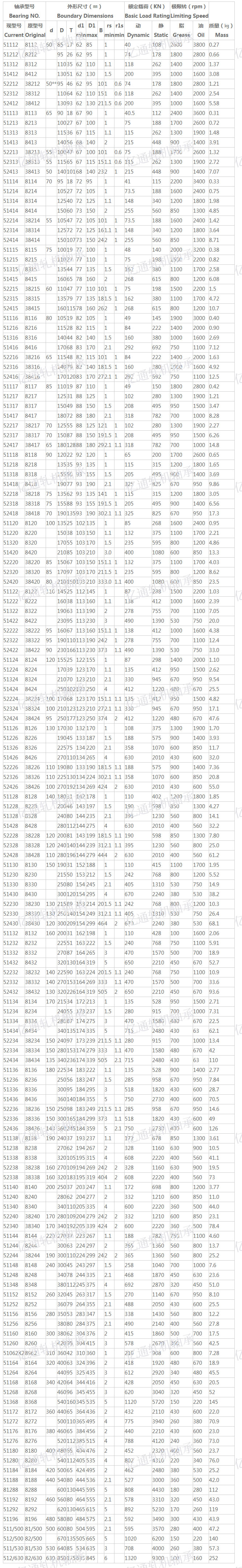 推力球軋機(jī)軸承參數(shù)