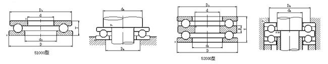 推力球軸承屬于分離型軸承,接觸角為90°,由鋼球(帶保持架)、軸圈(與軸緊配合)和座圈組成,鋼球在軸圈和座圈之間旋轉(zhuǎn)。只能承受軸向載荷,不能承受徑向載荷。由于軸向載荷是均勻地分布在每個鋼球上,故載荷能力較大;但工作時,溫升較大,允許極限轉(zhuǎn)速較低。 推力球軸承不能限制軸或外殼的徑向移動,但可限制軸和外殼的軸向移動,因此,此類軸承在軋鋼機(jī)上通常作為軋輥的軸向定位使用。