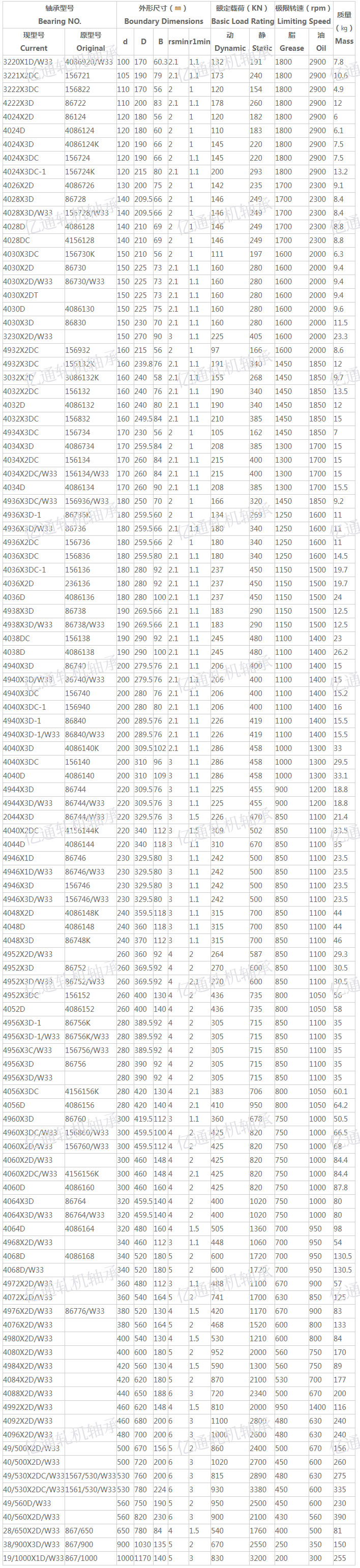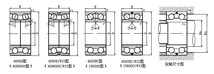 雙列角接觸球軸承軸承型號(hào)Bearing NO.外形尺寸(㎜)Boundary Dimensions額定載荷(KN)Basic Lo...